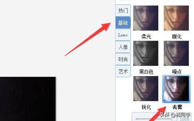 2、在基础的菜单下面,点击去雾 选项,这时可以提高图片的清晰度和对比度。