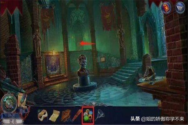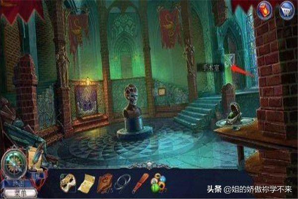 1、进入学院大厅后,先在大厅中拿到两个玻璃眼球、夹具、钥匙和扇子。